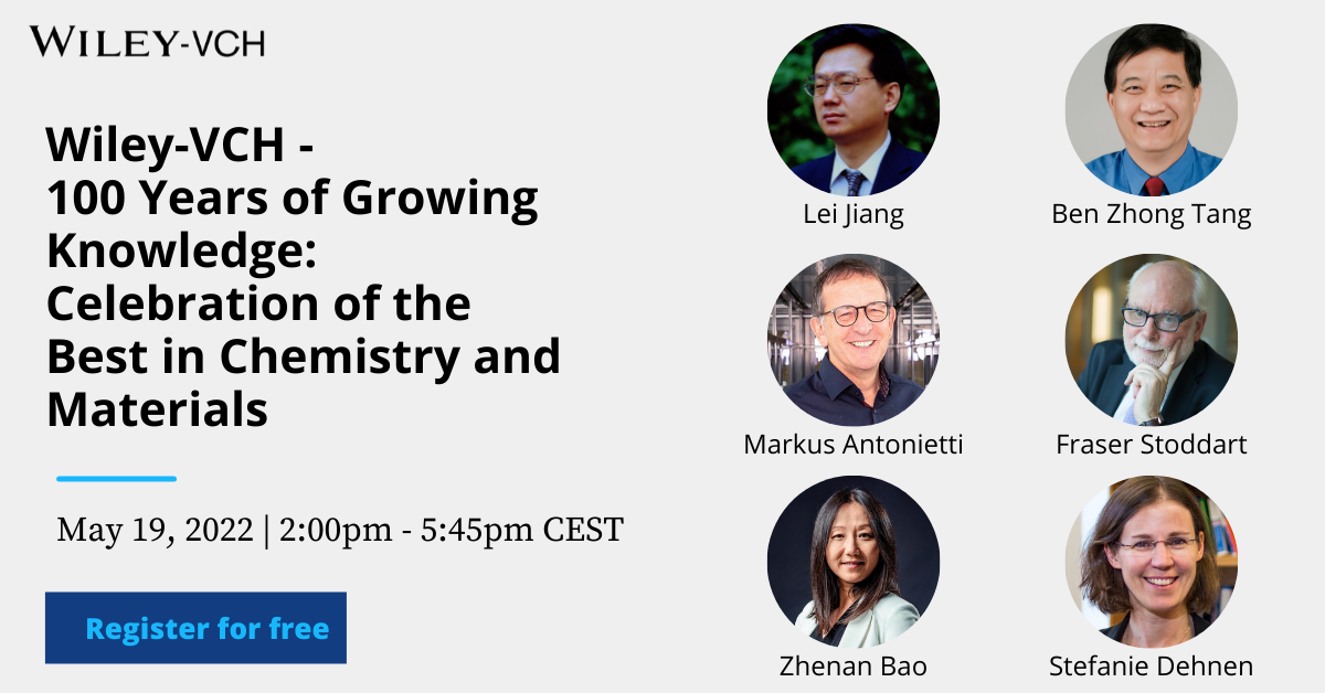 This exciting event will be moderated by Neville Compton (Angewandte Chemie), Ulrike Kauscher Pinto (Advanced Materials, Advanced Functional Materials, Small, Advanced Healthcare Materials),Anne Nijs (EurJOC), and Jörn Ritterbusch (Advanced Functional Materials), and will highlight the best in chemistry and materials publishing.