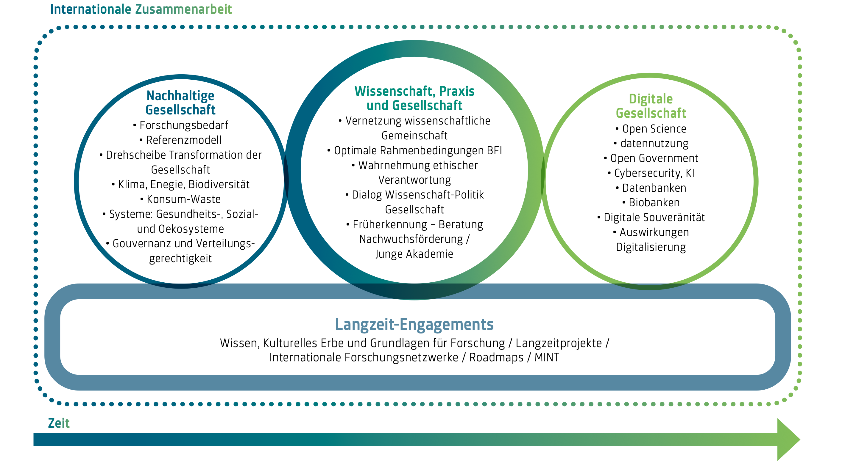 With its six units, nine research infrastructures, around 100 commissions and 157 member societies, the Swiss Academies (A+) has developed a new multi-year plan for the period 2025-2028. The variety of objects and topics to be worked on, as well as the broad spectrum of disciplines, methods, knowledge goals and bodies of knowledge, could be bundled in six focal points. With its interdisciplinary and transdisciplinary approach, the academy network can comprehensively address urgent problems and identify viable, robust solutions.