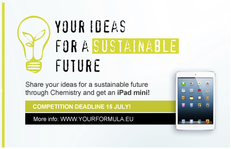 Your Formula fans! Would you like to help enhance awareness, improve general knowledge, and communicate the importance of advancing sustainable chemistry in our planet? And get an iPad mini as well? Then, we invite you to share your ideas for a sustainable future!