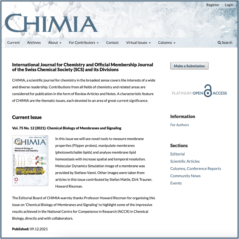 In 2020, CHIMIA became a platinum Open Access journal. By doing so the Swiss Chemical Society, as the publisher of CHIMIA, and the CHIMIA Editorial Board stated their support to the growing movement across Europe towards Open Access and Open Science.