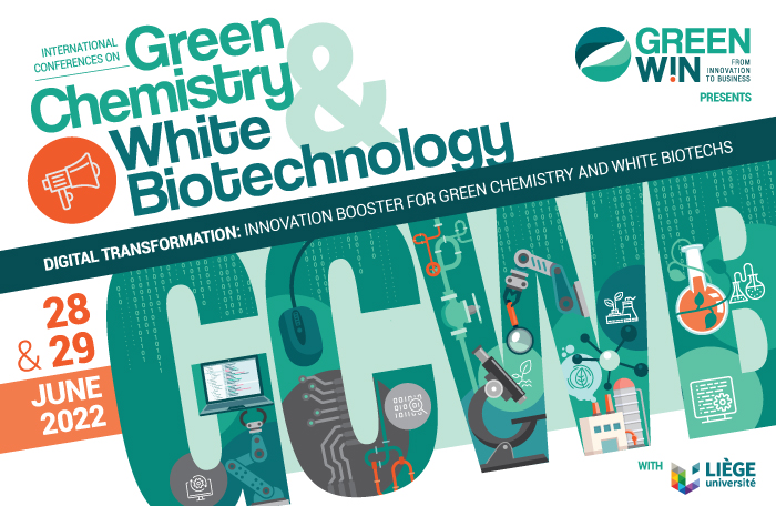 GreenWin is organizing the 8th edition of the International Conferences on Green Chemistry and White Biotechnologies, will take place on 28 & 29 June 2022. It will be dedicated to “Digital Transformation: Innovation booster for Green Chemistry and White Biotechs”.They will be held at the Sart-Tilman University Campus in Liège.