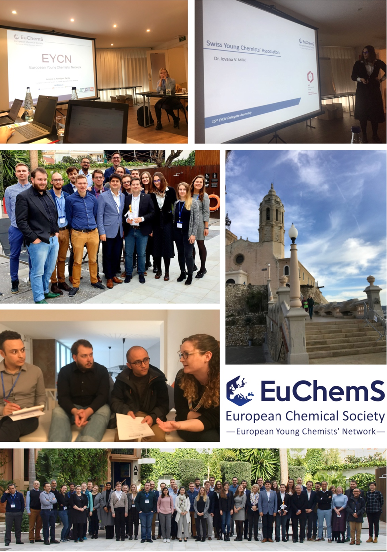 The 15th Delegate Assembly (DA) of the European Young Chemists’ Network (EYCN) took place in Sitges, Spain, on January 26–29, 2020 and it was organized in collaboration with the Catalan Chemical Society. Two Delegates of the Swiss Chemical Society, namely Dr. Jovana V. Milić (EPFL) and Amin Hodaei (EPFL), represented the Swiss Young Chemists’ Association (SYCA) at the event.