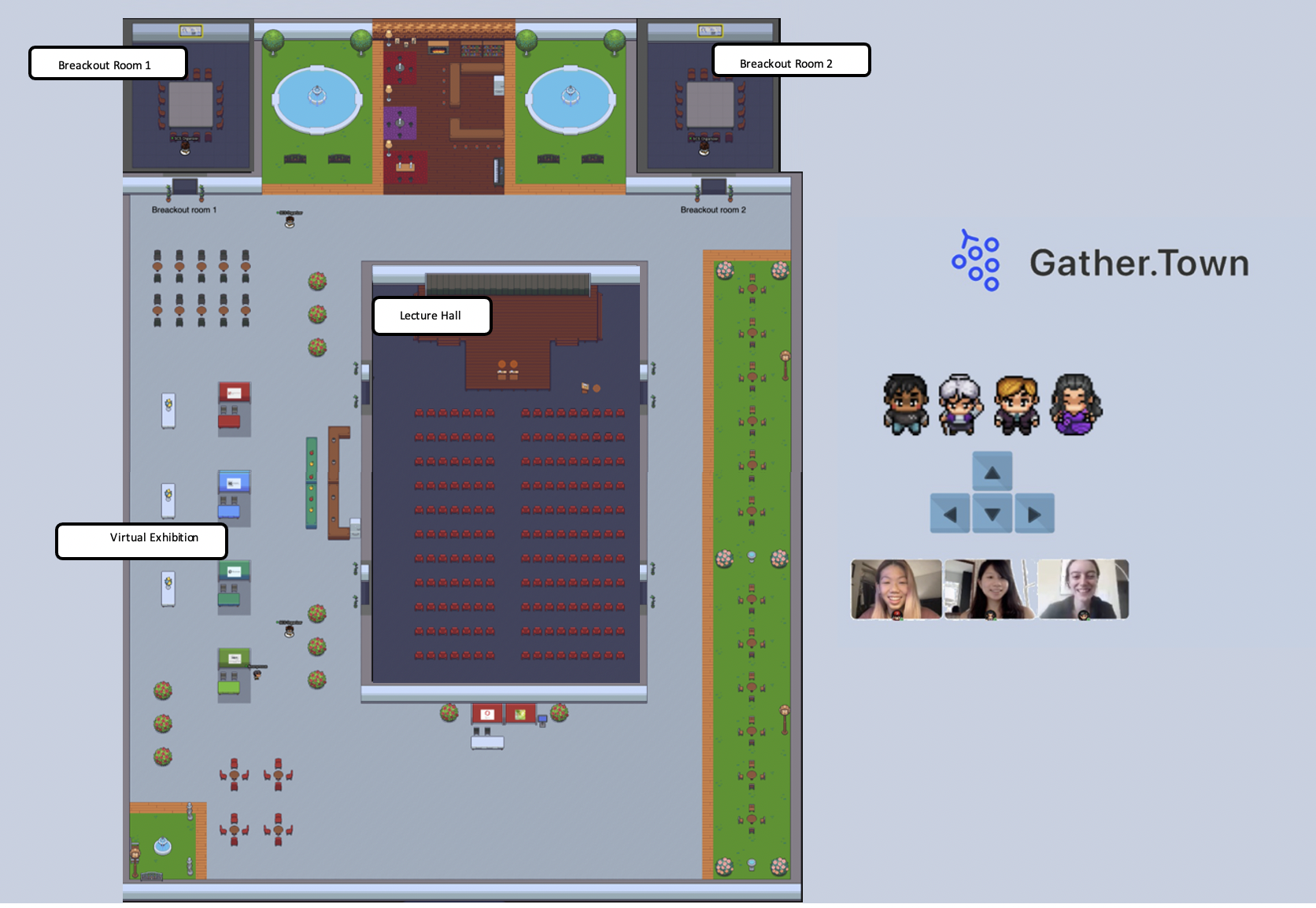 During the registration process, you will generate a profile and login credentials. After the login you will find a 'Join the Online Symposium' button on the "Conference Location" site and on the symposium main page that guides you to the virtual conference room (Gather Town).