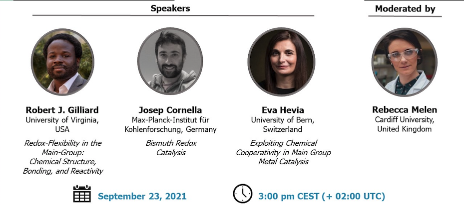 - Eva Hevia (University of Bern, Switzerland): Exploiting Chemical Cooperativity in Main Group Metal Catalysis